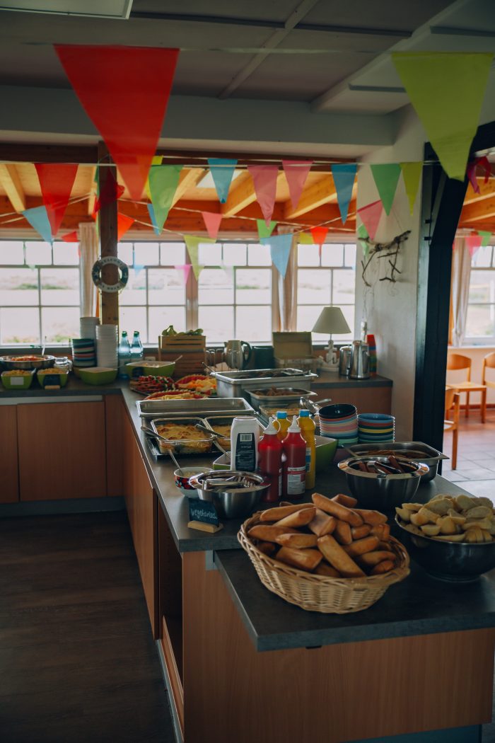 Am Ende stand fest: Madita, die Spurensucherin, war die Täterin! Vor lauter Eifer hatte sie vergessen, sich ein Mittagessen einzupacken und der Hunger war einfach zu groß geworden. Doch reumütig stellte sie den restlichen Kuchen später fürs Bergfestbuffet zur Verfügung. Bernd wurde natürlich freigelassen, und der Fall war gelöst. Das Buffet selbst ließ keine Wünsche offen: Eine riesige Auswahl sorgte dafür, dass wirklich jedes Kind mehr als drei Lieblingsspeisen entdeckte. Ein großes Lob an die Heimeltern, die mit viel Liebe und Mühe ein köstliches Festmahl gezaubert hatten! Der Abend bot dann noch zwei wunderbare Optionen: eine ausgelassene Disco oder einen entspannten Strandspaziergang. Die Disco war gut besucht, und auch davor sammelten sich einige Kinder zu Gesellschaftsspielen und um sich gegenseitig kleine Briefe zu schreiben. Ein gelungenes und ereignisreiches Bergfest ging zu ende und wir sind müde und glücklich ins Bett gefallen.