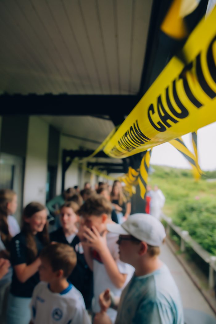 Am Morgen des Bergfests nahm das Geschehen dann Fahrt auf. Vor den Augen aller wurde Freizeitleitung Bernd plötzlich von einem Polizisten abgeführt. Doch für uns stand fest: Bernd war unschuldig! Sofort machten sich unsere jungen Detektivinnen und Detektive daran, die Wahrheit ans Licht zu bringen und Bernds Unschuld zu beweisen. Mit Fallakten ausgestattet zogen die Kinder los, um Hinweise zu sammeln. Dazu mussten sie mit verschiedenen Personen sprechen, die in irgendeiner Weise mit dem Verbrechen in Verbindung standen. Doch die Informationen gab es nicht einfach so, sie mussten durch kleine Aufgaben erarbeitet werden. So gab es zum Beispiel einen Amtsarzt, der Urinproben von Verdächtigen testete (in Wahrheit natürlich nur Apfelsaft, keine Sorge!), beim Schnüffler wurden Düfte zugeordnet, die Sprurensicherung sammelte Finger- und Fußabdrücke und sogar Selbstverteidigung konnte geübt werden.