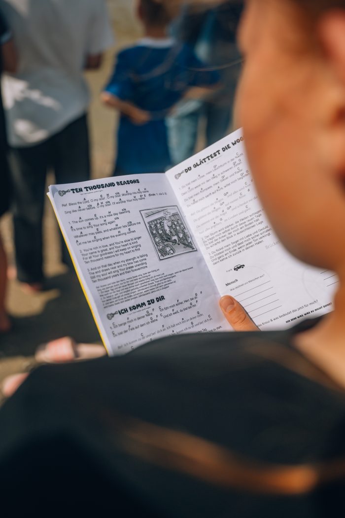 Der Sonntag war ein vor allem segensreicher Freizeittag und wir wurden zweifach überrascht vom Wetter: Vormittags war es der Regen, der uns dazu zwang unser ursprüngliches Programm anzupassen. Doch dann wurden tolle Workshops angeboten und eine kreative Bastelstraße entstand im U-Raum. Die Kinder konnten Erinnerungskarten oder Perlenarmbänder basteln, Filzen, bei Just Dance tanzen und vieles mehr.
